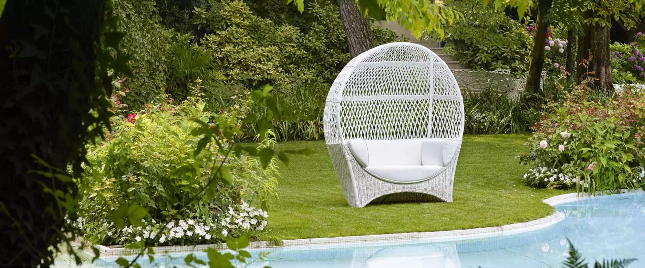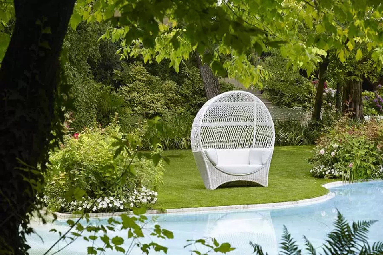 To preserve the durability of the natural materials with which it is made, as for all of the elements in the Orangerie collection, it should be used in an area protected from rain and direct sunlight. The Altair high bench can be used on porches, on verandas or in conservatories as well as in wellness centres and spas, as it is resistant to humidity.
