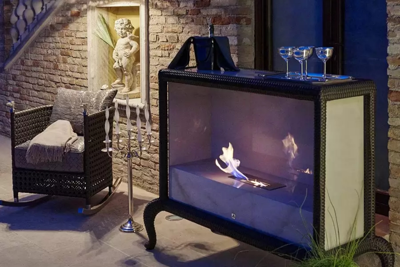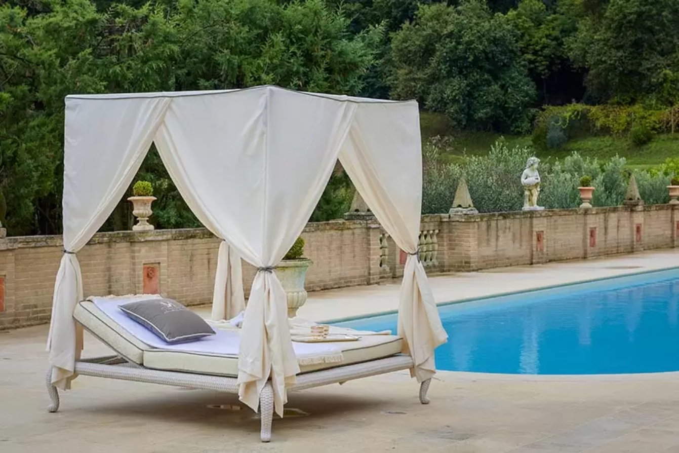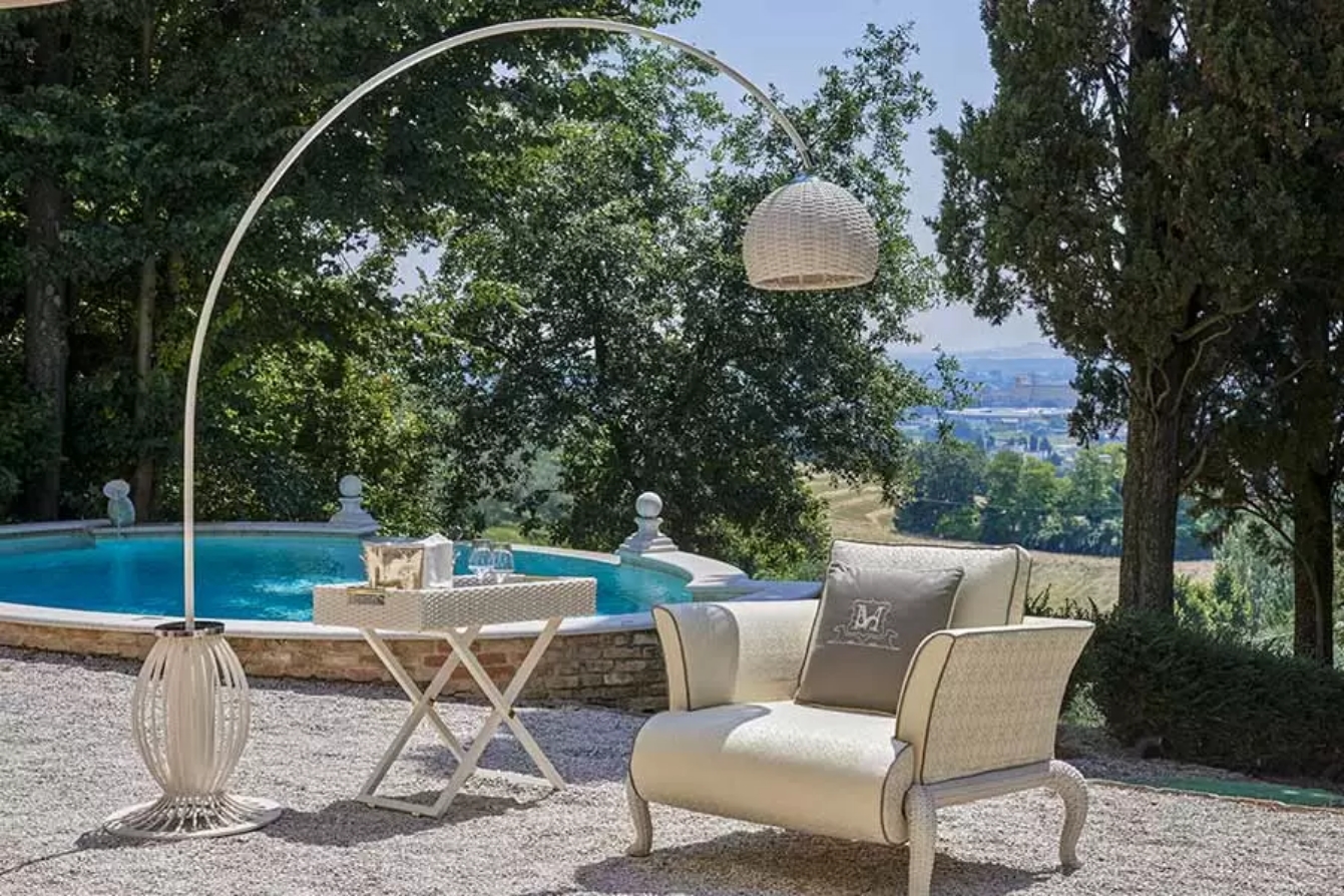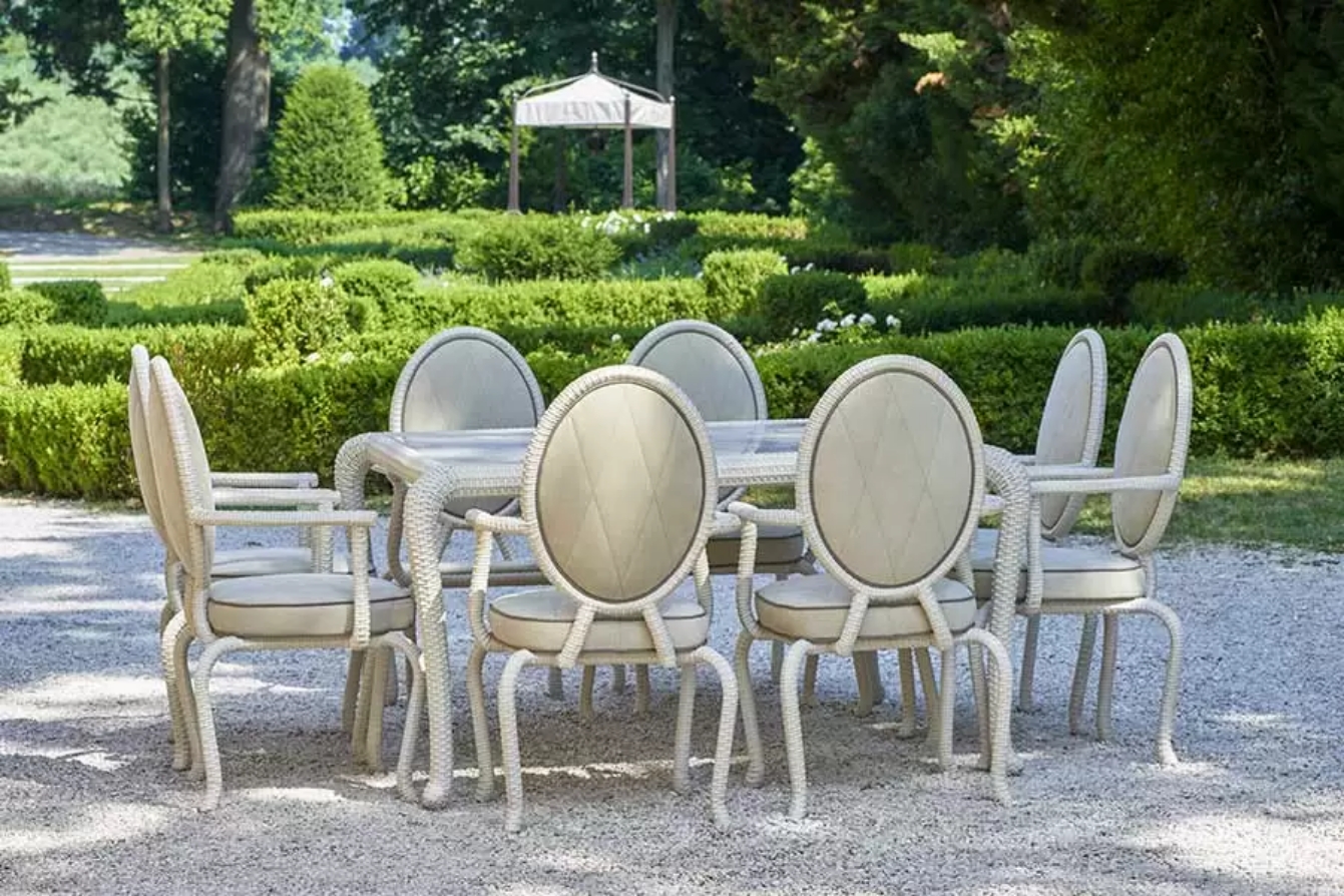 The furnishings from the Canopo range stem from a dreamlike inspiration: giving rise to furnishings with a strong dramatic impact, which combine imposing aesthetics with convenience and ease of use. The leg is the most distinctive part of the design of every piece of furnishing in this range. An element that is obviously classical in style, but at the same time has some distinctly feline traits. This iconic detail is combined with large cushions formed into soft shapes enveloping almost the entire structure. This vast range of furnishings meets every need for the use and decoration of an outdoor space: sofas, dining tables, chairs, console tables, sunbeds, canopy beds, lights, food trolleys and bioethanol fires. In addition to furnishings, accessories and lighting, the range also includes outdoor kitchens with the same distinctive leg design. With items from the Canopo range, there are no limits to the creation of a sophisticated and complex design for a total look that is fully coordinated in every detail. In contrast to the sophisticated and glamorous appearance, the furnishings in this range are made with materials that permit prolonged use outdoors, as are all of the elements from the Siderale collection. Aluminium frames covered in hand-woven synthetic resin that is resistant to weather conditions, water-repellent fabrics and waterproofed cushions. Often used in combination with elements from the Sole collection.