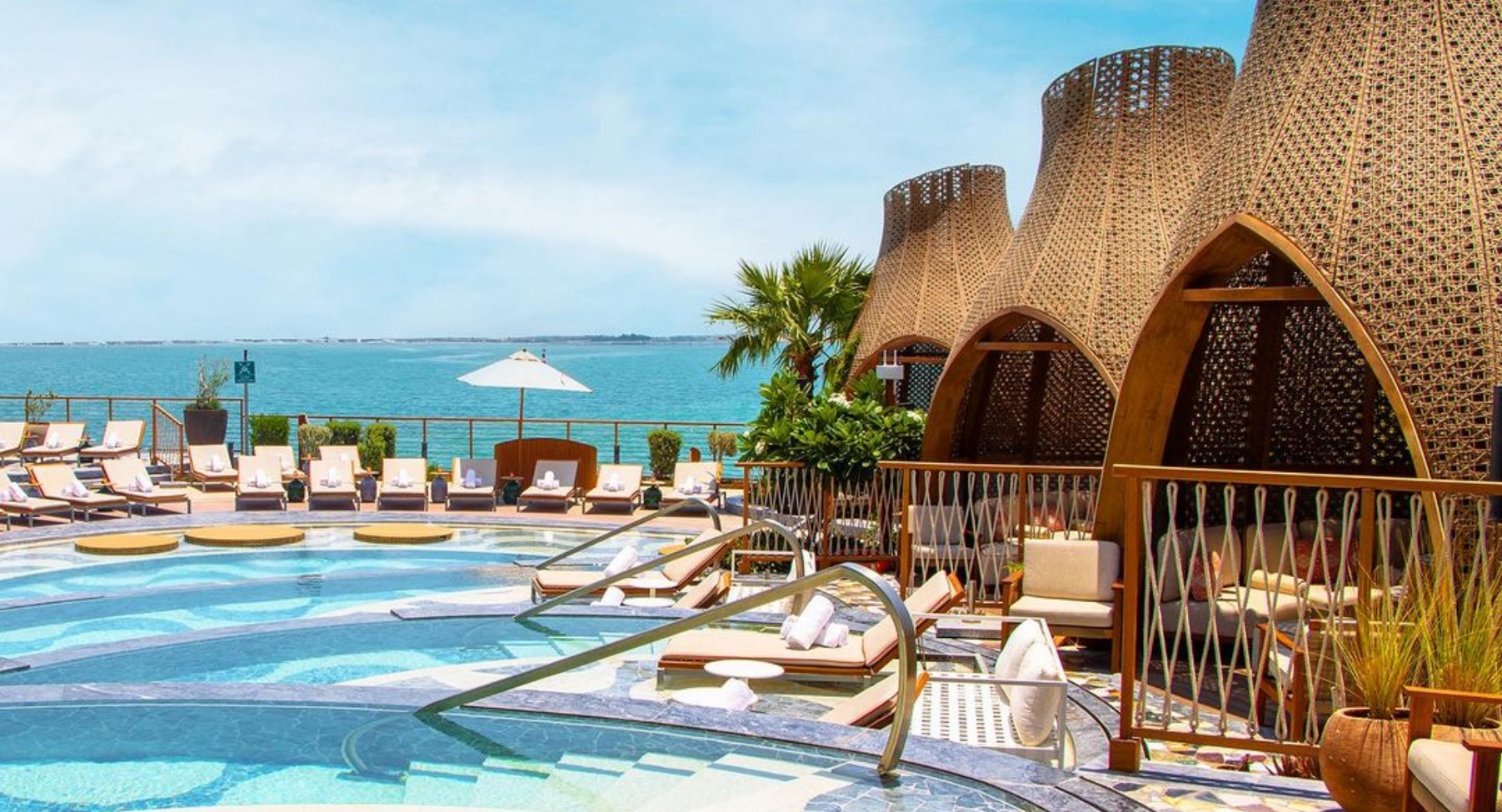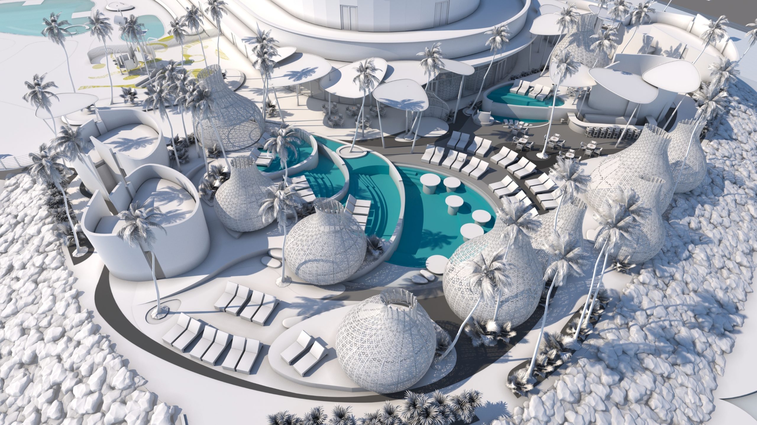 Un altro progetto speciale e impegnativo di DFN per il mono del luxury outdoor, che ha richiesto massimo impegno e attenzione ai dettagli. Abbiamo ideato e realizzato le cabanas esterne per il Sushisamba Beach Club del Waldorf Astoria Lusail Doha. Cinque cabanas uniche e altamente funzionali decorano gli spazi esterni del nuovo hotel di lusso a 5 stelle. A forma di lanterna, le cabanas mutano nell’arco della giornata e della notte. Durante il giorno creano suggestivi giochi di luce e ombra, mentre di notte una luce soffusa si diffonde dall’interno, creando un’atmosfera avvolgente. Ogni struttura è alta 5 metri e caratterizzata da una texture particolare che disegna una geometria personalizzata.