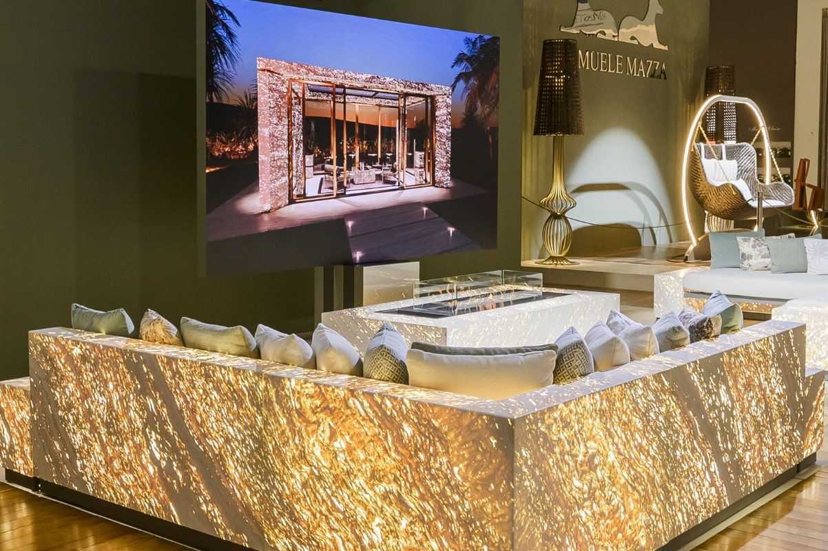 Furnishings that blend light, material and design, where the future meets tradition. In fact in the Mirabile Collection, we draw endless inspiration from the world of sailing mixing wood and steel creating a new proposal of chairs, tables and a gorgeous three seater hammock. Instead the flagship sofa from Eternal collection realized using the ancient and majestic travertine marble is the pinnacle of our craftsmanship.
