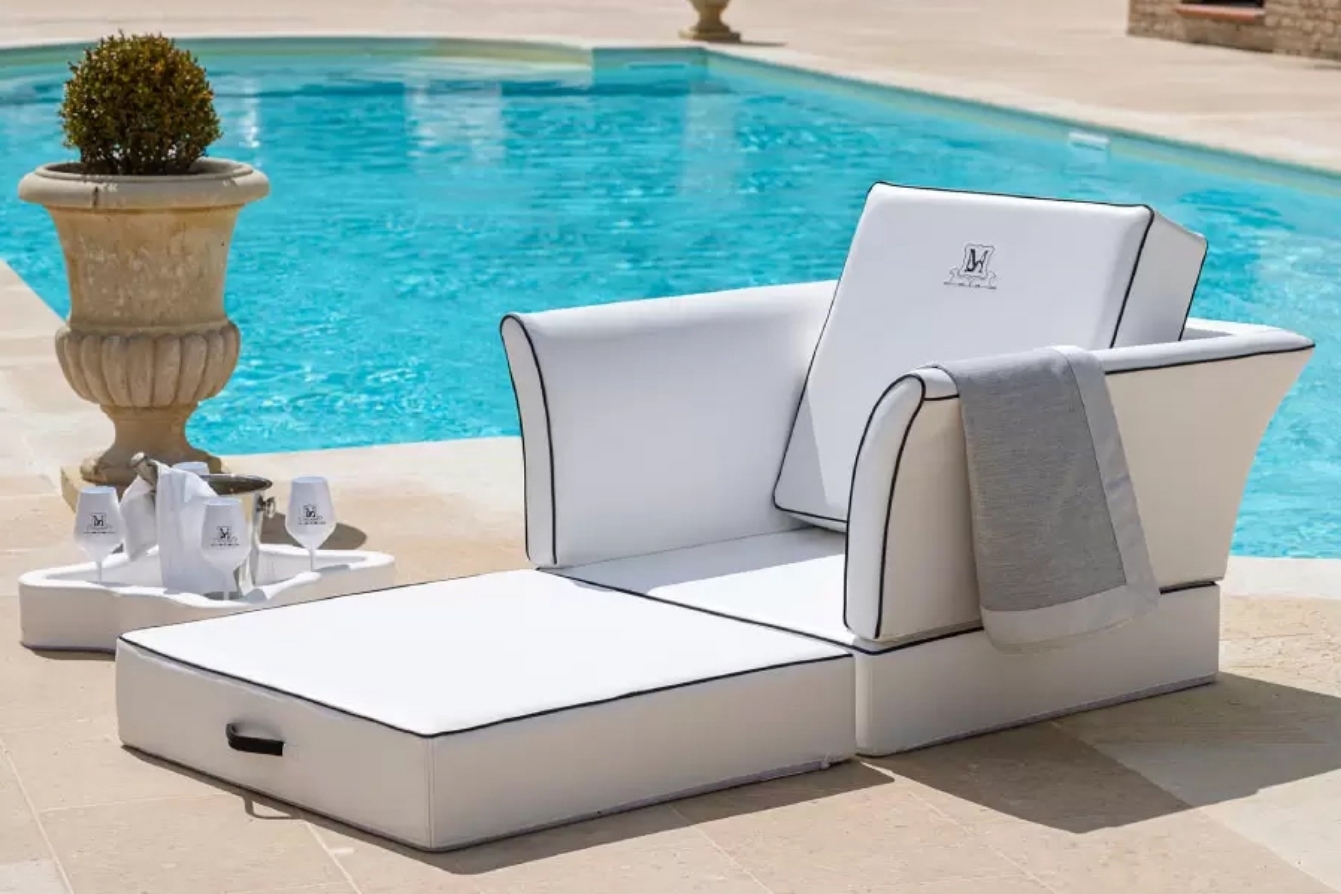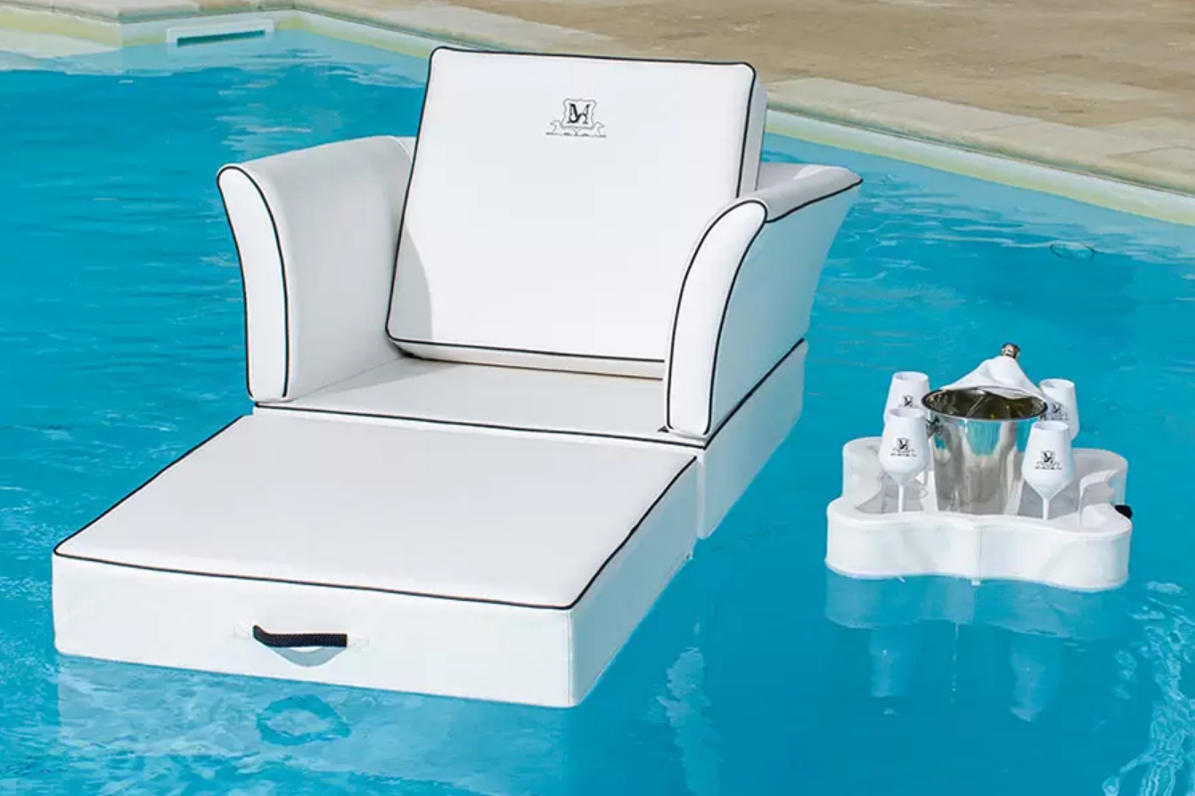 These new objects of desire are to sunbathe, have a drink or relax in the water without getting wet. The comfort of your armchair brought on your pool. The glamour and elegance of the Samuele Mazza style for a new line that plays protagonist role in outdoor spaces with swimming pool.